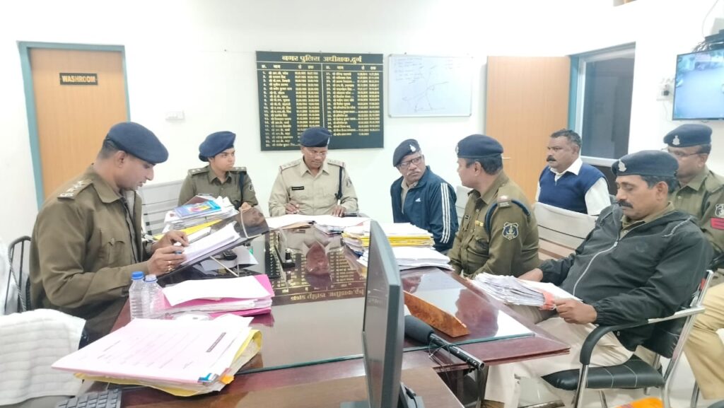 दुर्ग पुलिस द्वारा जिले के सभी थानों में पेंडिंग पड़े केश की समीक्षा कर उसे जल्द से जल्द पूरा कराने दुर्ग सीएसपी मणिशंकर चंद्रा ने बैठक आहूत कर की समीक्षा