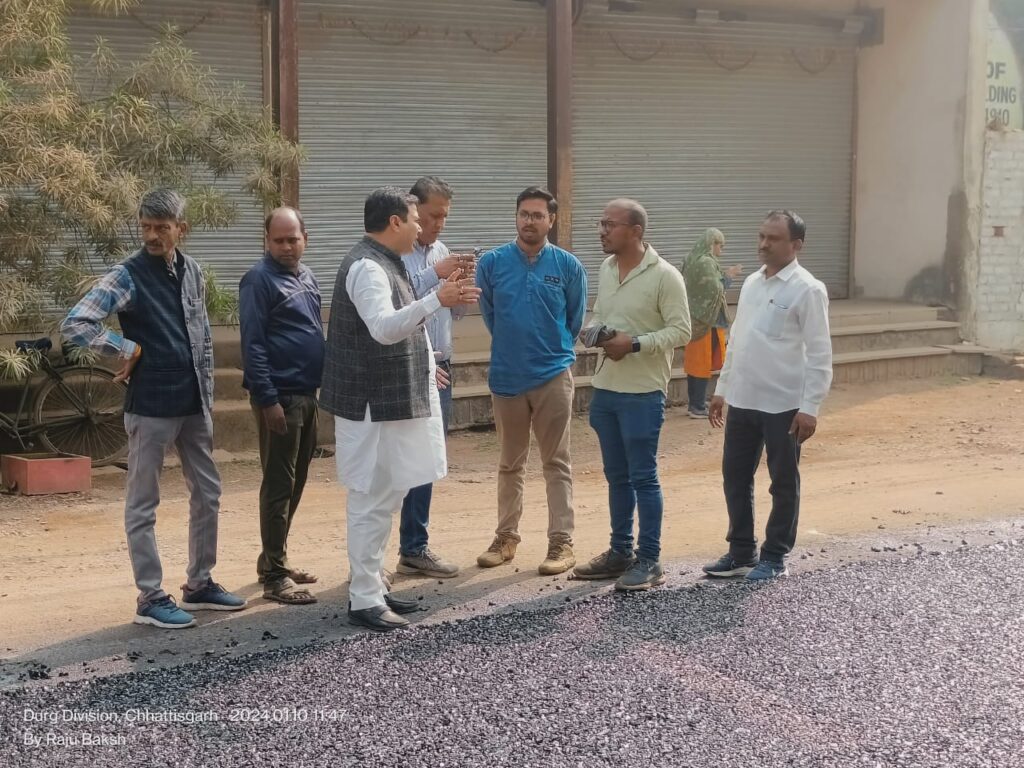 दुर्ग महापौर धीरज बाक्ली वाल ने शहर में चल रहे विकास कार्य को लेकर सड़क डामरीकरण निर्माण कार्य का अफसरों और ठेकेदार के साथ मौके पर पहुंच किया औचक निरीक्षण