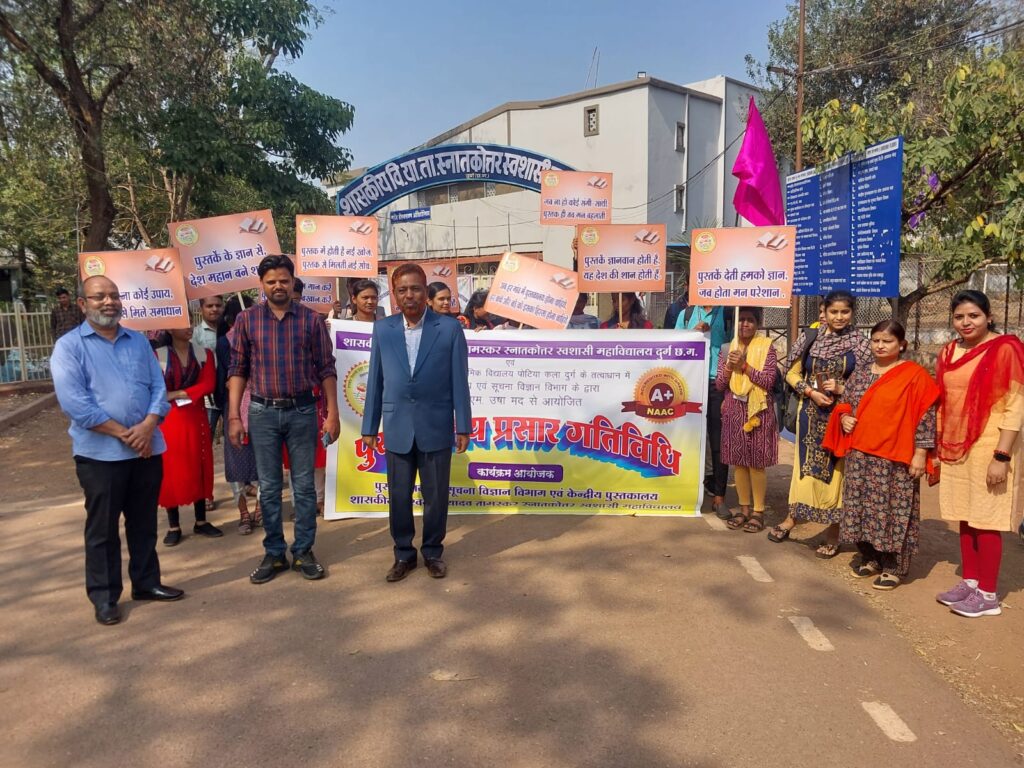 शासकीय विश्वनाथ यादव तामसकर स्नातकोत्तर महाविद्यालय के शिक्षको एवं विद्यार्थीयो ने पोटीया कला दुर्ग एवं पूर्व माध्यमिक विद्यालय पोटीया कला दुर्ग में पुस्तकालय प्रसार कार्यक्रम के अन्तर्गत पुस्तकालय एवं पुस्तक से संबंधित महत्वपूर्ण जानकारीया प्रदान की पठन पाठन के प्रति जागरूकता लाने हेतु शासकीय पूर्व माध्यमिक विद्यालय पोटीया कला दुर्ग एवं शासकीय विश्वनाथ यादव तामसकर स्नातकोत्तर महाविद्यालय दुर्ग के सम्मिलित तत्वधान में एक रैली निकालकर पुस्तकों एवं पुस्तकालय से संबंधित नारे लगाए रैली के प्रति स्थानीय नागरिको ने अपनी रुचि दिखाते हुए सराहना की महा विद्यालय से रैली को प्रस्थान करवाते हुए प्राचार्य डॉ एम ए सिद्दकी ने विद्यार्थियों को निर्देशीत करते हुए अच्छी तरह से पुस्तक एवं पुस्तकालय से संबंधित उपयोगी जानकारी प्रसारित कर अपने लक्ष्य में सफल होने को बोला