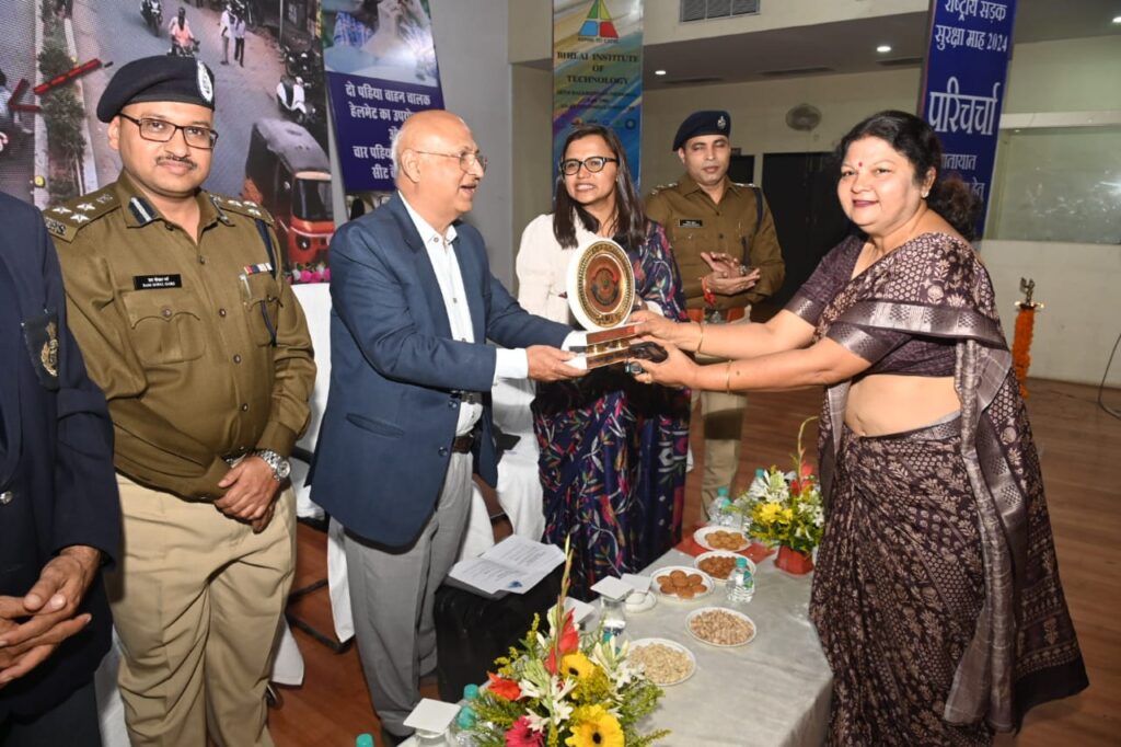 आईजी श्री रामगोपाल गर्ग ने कहा कि राष्ट्रीय सड़क सुरक्षा माह का आयोजन सड़क दुर्घटनाओं में कमी लाने एवं सड़क सुरक्षा के प्रति लोगों में जागरूकता लाने लिए शुरू किया जा रहा है। 2016 में सुप्रीम कोर्ट कमेटी फॉर रोड सेफ्टी गठन किया गया। हमारा उद्देश्य है कि सड़क सुरक्षा नियमों का पालन कराना और उससे बचने के उपाय बताना। प्रकाश व्यवस्था, संकेतक, रोड मार्किंग व गति नियंत्रक बोर्ड लगाने से एक्सीडेंट में कमी आई है। उन्होंने कहा कि 60 प्रतिशत से अधिक सड़क दुर्घटनाएं दूसरों की गलती से होती जिसके लिए हमें हेलमेट पहनना और सीट बेल्ट लगाना आवश्यक है। जिससे हमारा जीवन सुरक्षित रह सके। हमारा प्रयास रहेगा कि जिले में शत प्रतिशत लोगों को हेलमेट पहनने के लिए जागरूक कर सके। उन्होंने माता-पिता, भाई-बहनों, मित्रों को प्रेरित करने को कहा कि वे नशे में गाड़ी ना चलाए, सीट बेल्ट पहने व यातायात नियमों का पालन करें। गुड सेमेरिटन (नेक व्यक्ति) ऐसे व्यक्ति जो सड़क दुर्घटना के समय घायल व्यक्ति को अपने वाहन से हॉस्पिटल पहुंचाया हो या नॉन मेडिकल मदद किया हो। ऐसे व्यक्ति को गुड सेमेरिटन (नेक व्यक्ति) कहा जाता है। इस दौरान गुड सेमेरिटन में अपनी महत्वपूर्ण भूमिका अदा करने के लिए न्यायमूर्ति श्री अभय मनोहर सप्रे ने श्रीमती सुभद्रा देवी एवं श्री अश्वनी टंडन को पुरस्कृत किया।
