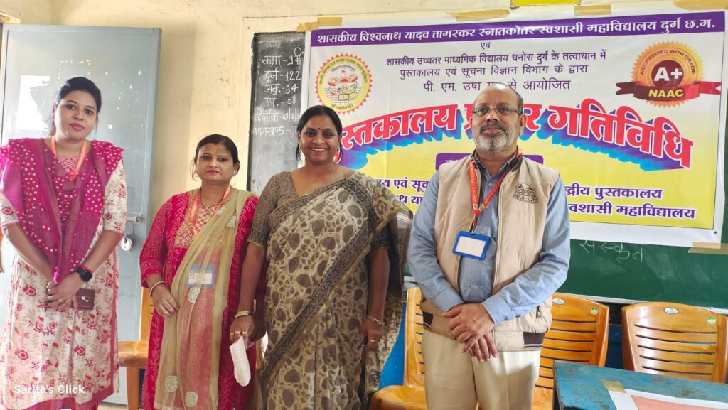 10 फरवरी 24 को शा. वि. या. ता. पीजी महाविद्यालय दुर्ग के पुस्तकालय विज्ञान के षिक्षकों एवं विद्यार्थियों ने धनोरा में शासकीय उच्चतर माध्यमिक विद्यालय धनोरा में पुस्तकालय प्रसार कार्यक्रम के अन्तर्गत पुस्तकालय एवं पुस्तकों से संबंधित जानकारियां प्रदान की। पुस्तकालय एवं पठन-पाठन के प्रति जागरूगता लाने हेतु शा.वि.या.ता. महाविद्यालय के पुस्तकालय विज्ञान विषय के विद्यार्थियों ने आकर्षक लघु नाटिका का मंचन किया नाटिका के माध्यम से पुस्तकालयों के माध्यम से एक अच्छे एवं सफल इंसान बनने का संदेष दिया गया।