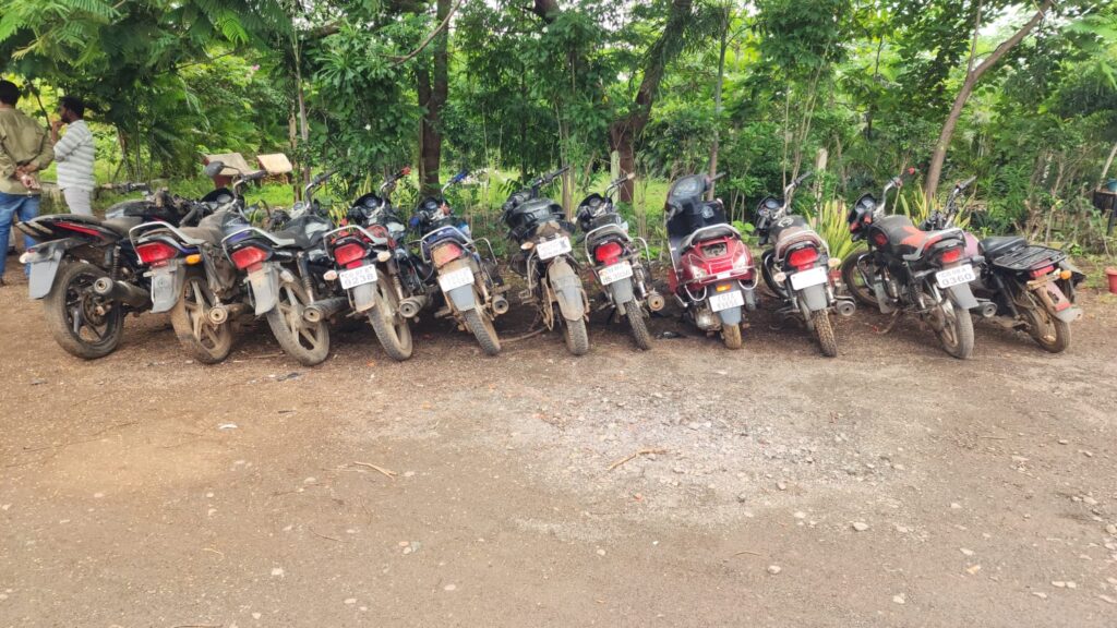 पुलिस प्रवक्ता पद्मश्री तंवर ने बताया कि थाना कोतवाली दुर्ग,मोहन नगर,पदमनाभपुर एवं विभिन्न थाना क्षेत्र में हो रही लगातार मोटर साइकिल चोरी की घटना को देखते हुए एसीसीयू एवं थाना पद्मनाभपुर संयुक्त टीम को मुखबीर से सूचना मिला कि दो मोटर साइकिलों में सवार 5 लड़के शराब भट्टी के आसपास मोटर साइकिल को बेचने के लिए ग्राहक की तलाश कर रहे है। पुलिस टीम मौके पर पहुंचकर घेराबंदी कर दो मोटर साइकिल सहित 5 लड़कों को पकड़ा। पूछताछ करने पर अपना नाम नरेन्द्र मरकाम(23 वर्ष) निवासी लालबाग, राजनांदगांव, मोहन मरकाम( 24वर्ष) निवासी बासिन, बालोद,मुकेश मरकाम(44वर्ष) निवासी सलोनी, राजनांदगांव, राजेश मरकाम (42 वर्ष) निवासी सुरगी, राजनांदगांव और प्रहलाद उर्फ बोडो देवार (20वर्ष) निवासी राजनांदगांव बताया। आरोपी प्रहलाद उर्फ बोडो देवार ने बताया वह अपने साथियों के साथ के साथ मिलकर जिला दुर्ग एवं अलग अलग जिलों के विभिन्न थाना क्षेत्रों में वाहन चोरी की घटना को करना स्वीकर किया। आरोपी प्रहलाद उर्फ बोडो देवार पूर्व से ही थाना पद्मनाभपुर के अपराध में फरार चल रहा था। जिससे पूछताछ में बताया कि चोरी की गई मोटर साइकिलों को अटल अवास के एक खंडहर मकान में बेचने के उद्देश्य से छिपाकर रखा हुआ है। आरोपियों की निशानदेही पर 01 एक्टीवा, 02 पल्सर, 02 सीडी डिलक्स, 06,एचएफ डिलक्स, 02, टी व्हीएस एक्सल, 01 यमाहा कुल 14 मोटर साइकिल बरामद किया है।