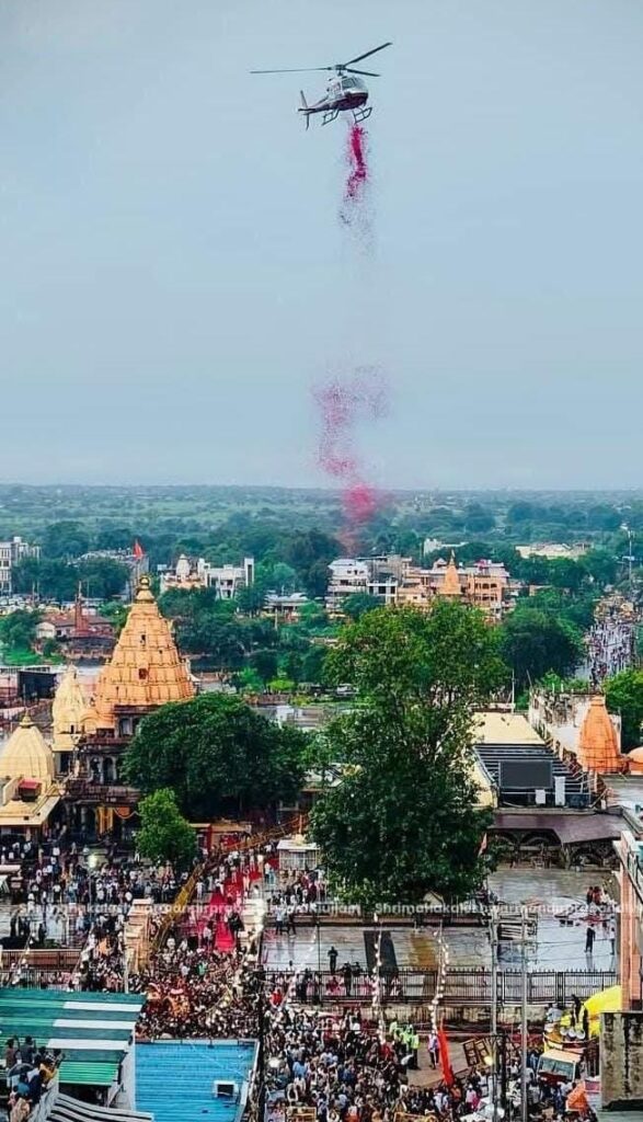 श्री महाकालेश्वर मंदिर प्रबंध समिति द्वारा मध्यप्रदेश के मुख्यमंत्री डॉ.मोहन यादव की मंशानुरूप राजसी सवारी में 500 किलो गुलाब के पुष्प की पंखुडियों से पुष्पवर्षा की गई | यह पुष्प वर्षा श्री महाकालेश्वर मंदिर प्रबंध समिति द्वारा श्री महाकालेश्वर मंदिर के शहनाई द्वार सलामी के दौरान व रामघाट पर माँ क्षिप्रा के तट पर सवारी के पूजन के दौरान की गई |