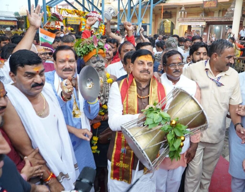 मुख्यमंत्री डॉ.यादव की मंशानुरूप राजसी सवारी में श्री महाकालेश्वर मंदिर प्रबंध समिति द्वारा पुष्पवर्षा की गई