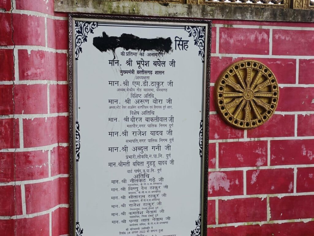 दुर्ग। शहीद वीर नारायण सिंह की प्रतिमा पर लगे नाम की प्लेट पर कालिख पोतने के मामले में पदमनाभपुर पुलिस ने एक अर्धविक्षिप्त महिला को हिरासत में लिया है। महिला की पहचान राही उर्फ रेखा निर्मलकर के रूप में हुई है।