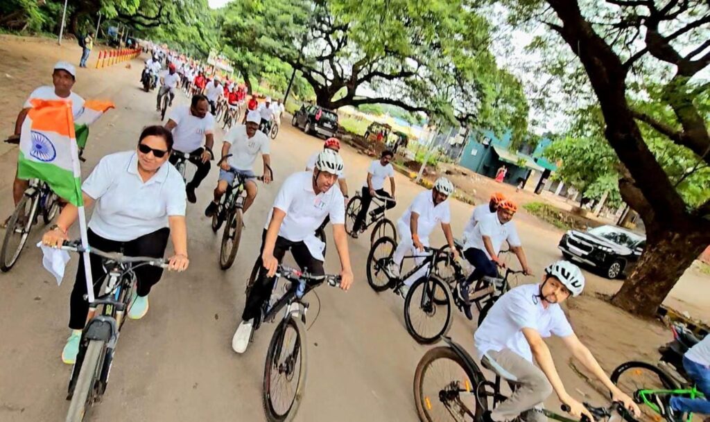 दुर्ग/ जिला प्रशासन एवं जिला खेल एवं युवा कल्याण विभाग दुर्ग द्वारा आयोजित राष्ट्रीय खेल दिवस के अवसर पर 29 से 31 अगस्त 2025 तक हॉकी के जादुगर श्री मेजर ध्यानचंद की स्मृति में फिट इंडिया छ.ग. राज्य स्तरीय सायकल रैली 31 अगस्त 2025 की प्रातः 8:30 बजे की गई। सायकल रैली को प्रगति भवन सिविक सेंटर, जयंती स्टेडियम भिलाई के मुख्य गेट पर कार्यक्रम के मुख्य अतिथि श्री विजय बघेल सांसद सदस्य लोकसभा क्षेत्र दुर्ग, अतिथि श्री ललित चन्द्राकर विधायक दुर्ग ग्रामीण, श्रीमती अलका बाघमार दुर्ग महापौर, श्री राकेश पाण्डेय अध्यक्ष खादी एवं ग्रामोद्योग, श्री सत्यनारायण राठौर आयुक्त दुर्ग संभाग दुर्ग, श्री अभिजीत सिंह कलेक्टर दुर्ग, श्री विरेन्द्र सिंह अपर कलेक्टर जिला दुर्ग, श्री राजीव पांडेय आयुक्त नगर निगम भिलाई, श्री राजेन्द्र प्रसाद ओलम्पियन बॉक्सिंग खिलाडी, श्री नरेन्द्र बंछोर महाप्रबंधक बीएसपी, परविन्द्र सिंह ग्रेवाल सहायक महाप्रबंधक बीएसपी, श्री पवन कुमार कार्यपालन निर्देशक बीएसपी, श्री विनोद खण्डेकर पूर्व विधायक, श्री व्ही.आर चेन्नायर सचिव साईक्लिंग संघ, श्रीमती कल्पना स्वामी सहायक संचालक क्रीडा, श्री तनवीर अकील जिला क्रीडा अधिकारी, श्री नीलकंठ वर्मा आर. आई. पुलिस लाईन दुर्ग उपस्थित थे। श्री मेजर ध्यानचंद हॉकी के जादुगर की छायाचित्र पर अतिथियों के द्वारा माल्यापन एवं दीप प्रज्वलित कर शुभारंभ किया गया।
