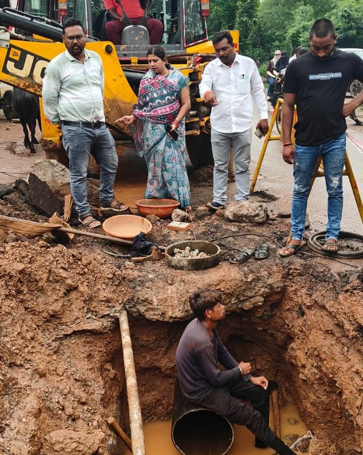 -महापौर श्रीमती अल्का बाघमार के निर्देश पर शहर के विभिन्न क्षेत्रों में लिकेज की शिकायत को ध्यान में रखते हुए नगर निगम के जलगृह विभाग द्वारा क्रमवार रिपेयर मरम्मत कार्य एक्सपर्ट टीम द्वारा कराया जा रहे हैं इसी क्रम में बघेरा टंकी जो कि शहर की सबसे बड़ी पानी टंकी है जिसमें लगभग 7 से अधिक वार्डो में पानी सप्लाई होता है जहां पिछले कुछ दिनों से पाइप लाइन फूटे होने के कारण टंकी फूल नहीं भर पा रहा है जिसके कारण सप्लाई लाइन के अंतिम छोर गया नगर,राजीव नगर मठपारा रामनगर क्षेत्र में प्रेशर से पानी नहीं पहुंचने के कारण लोग परेशान थे जिसे ध्यान में रखते हुए जलविभाग प्रभारी श्रीमती लीना दिनेश देवांगन ने पहल करते हुए रिपेयर कार्य को प्राथमिकता से चालू करवाया और स्वयं मौके पर पहुंचकर चल रहे कार्यों का अवलोकन किया तथा अधिकारियों को आवश्यक निर्देश भी दिए इस अवसर पर वार्ड पार्षद ललित ढीमर उप अभियंता विनोद मांझी अन्य मौजूद थे।