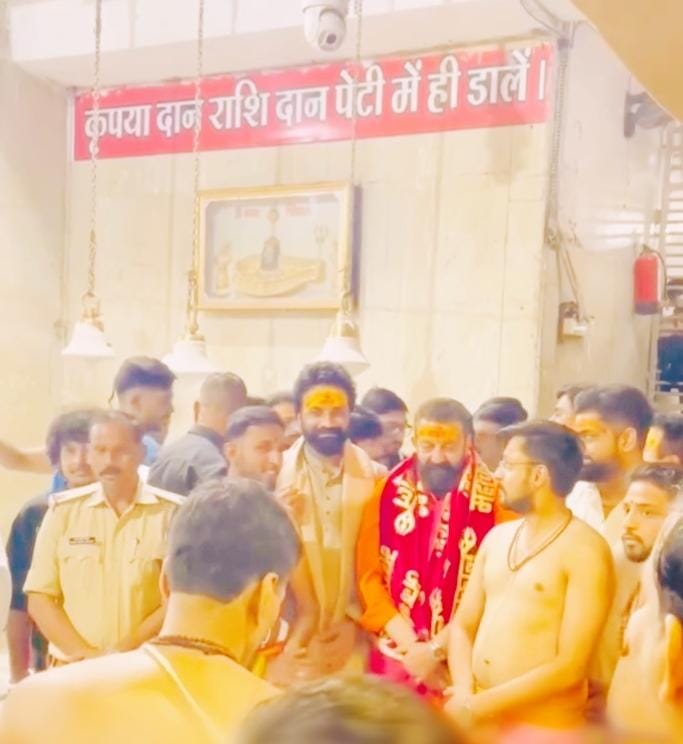 उज्जैन। बाबा महाकाल की भस्म आरती में आए दिन वीआईपी सहित श्रद्धालुओं का जमावड़ा लगा रहता है, इसी तरह प्रातः काल बॉलीवुड के खलनायक एक्टर (संजू बाबा) संजय दत्त उज्जैन आए एवं गुरुवार को बाबा महाकाल की भस्म आरती में सहभागिता कर दर्शन लाभ प्राप्त किया। मशहूर एक्टर संजय दत्त शिव भक्त भी हैं। मंदिर में गर्भगृह के बाहर नंदी हाल में नंदी के पास बैठकर केसरिया कुर्ता पहने अभिनेता संजू बाबा भस्म आरती के दौरान भक्ति में लिन दिखाई दिए एवं श्रद्धालुओं के साथ बाबा महाकाल को पूरे समय निहारते रहे। गर्भगृह में भस्म आरती के लिए जाते समय मंदिर परिसर में बाहर की ओर छोटी बच्चियों ने संजय दत्त को तिलक लगाया एवं स्वागत किया। महाकाल दर्शन करने के बाद मशहूर एक्टर संजय दत्त ने मीडिया से कहा कि यहां कर ऐसा लगता है कि बहुत बड़ी शक्ति है एवं मेरा सौभाग्य है कि बाबा ने मुझे बुलाया है। खलनायक हीरो संजय दत्त ने कई फिल्मों में काम किया है। अभिनेता संजय दत्त ने अपनी लाइफ में कई बार अप-डाउन भी देखा और अपने करियर में फिल्म खलनायक, यलगार, सड़क, खूबसूरत, बाबा नवाब, वास्तव, कुरुक्षेत्र, मुन्ना भाई एमबीबीएस, एक और एक ग्यारह सहित कई हिट फिल्मों में अभिनय किया। संजय दत्त का बॉलीवुड करियर में फिल्मों में अपना एक अलग ही स्टाईल में काम करने का तरीका रहा है जिससे फिल्मों में खलनायक एवं संजू बाबा की भूमिकाओं में दर्शकों का दिल जीता है। इसलिए फिल्म अभिनेता संजय दत्त को खलनायक एवं संजू बाबा हीरो के रूप में जाना जाता है। एक्टर संजय दत्त की एक के बाद एक कई फिल्में आई है।संजय दत्त ने अपने फिल्मी करियर में बालीवुड की कई अभिनेत्रियों के साथ अभिनय किया है। संजय दत्त की इस वर्ष 2025 एवं 2026 में फिल्म धुरंधर एवं द गुड महाराज रिलीज होने वाली है। अपनी आने वाली फिल्मों के लिए संजय दत्त ने बाबा महाकाल से प्रार्थना की। पूजन-विधि पुजारी अर्पित गुरु एवं पुजारी यश गुरु द्वारा सम्पन्न कराई गई। भस्म आरती के दौरान नंदी हाल में प्रसिद्ध अभिनेता संजय दत्त को देखकर श्रद्धालुओं ने संजू बाबा कहकर भी पुकारा एवं उनका अभिवादन किया।