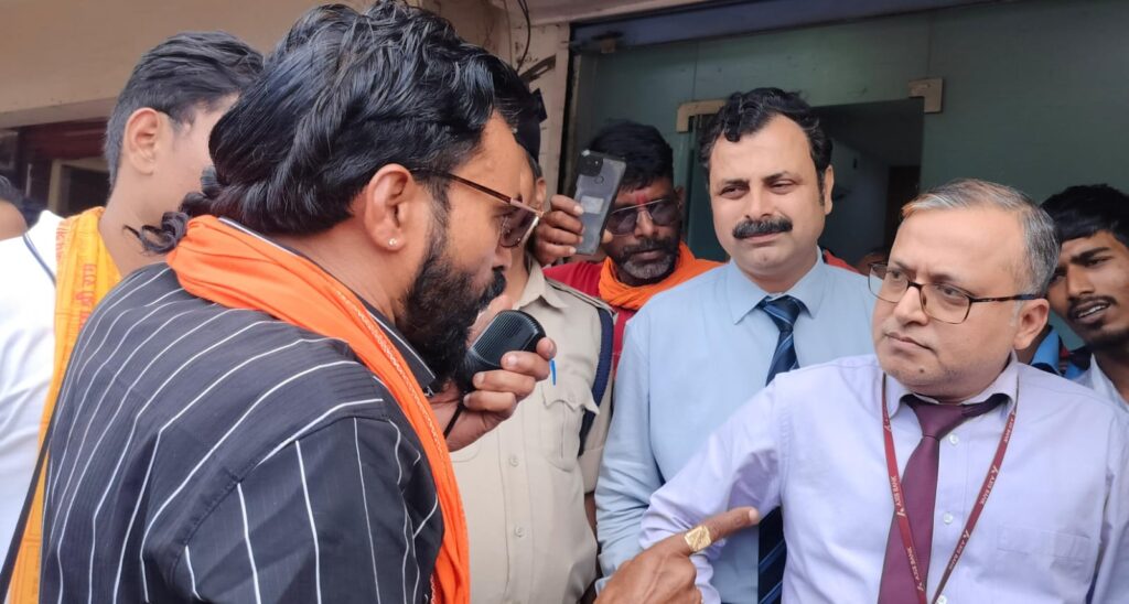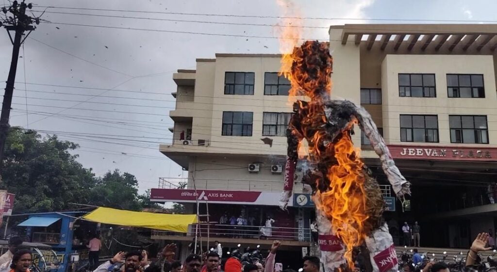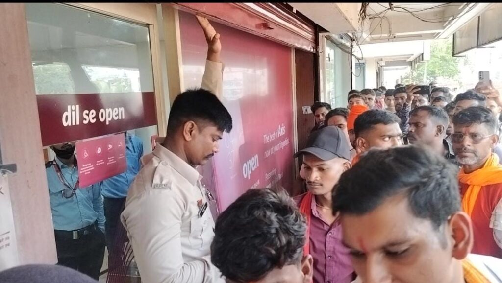 विरोध जताते हुए विश्व हिंदू परिषद बजरंग दल के कार्यकर्ताओं ने एक्सिस बैंक का पुतला दहन किया तथा बैंक गेट पर ताला जड़कर प्रदर्शन किया।