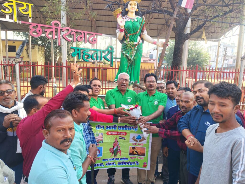 भिलाई (दुर्ग)। पर्यावरण संरक्षण की दिशा में कार्यरत संस्था ग्रीन आर्मी द्वारा रामनगर मुक्तिधाम शाला प्रांगण में टीम गठन एवं वृक्षारोपण कार्यक्रम आयोजित किया गया। इस अवसर पर ग्रीन आर्मी के अध्यक्ष हेमंत साहू, उपाध्यक्ष संजय साहू, कोषाध्यक्ष राजकुमार, सचिव कृतेश साहू, सह सचिव भरत सहित कार्यकारिणी सदस्य खोमन ठाकुर, शैलेन्द्र कुमार कोरेन्द्, योगेश सेन, राजेन्द्र वर्मा, गुमान देवांगन, रूपेश मंडावी, भुनेश्वर विश्वकर्मा, प्रेमन साहू, दिनेश देशमुख आदि उपस्थित रहे।
