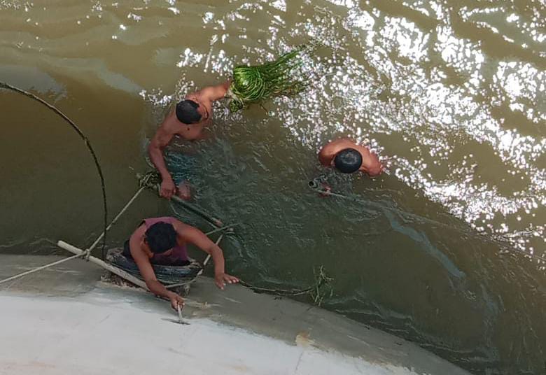 दुर्ग/नगर पालिक निगम दुर्ग जल विभाग से मिली जानकारी के मुताबिक शिवनाथ नदी का जलस्तर बढ़ने से इंटरवेल के आस पास झिल्ली पन्नी एवम रेत को निरन्तर निगम अमला द्वारा निगम क्षेत्र शहर में पेयजल व्यवस्था हेतु निगम के कर्मचारी नदी के अंदर उतरकर जान जोखिम में डालकर पंप में फसे कचरा झिल्ली पन्नी की सफाई का कार्य लगातार कर रहे है।महापौर धीरज बाकलीवाल,आयुक्त लोकेश चन्द्राकर ने अधिकारियों को निर्देश की समय समय पर गैंग लगवाकर इंटरवेल की सायफन की सफाई होती रहे। शहर में पानी की सप्लाई प्रभावित न हो इसको ध्यान में रखकर गंभीरता से कार्य किया जा रहा है।दोनो इंटकवेल में मिट्टी के साथ जलकुंभी जमा न हो जिसके कारण 24 एवं 42 एमएलडी के इंटकवेल में सफाई के लिए एक्सपर्ट गैंग लगाया गया है।पानी की क्षमता कम न हो इसलिए सफाई कार्य लगातार जारी है। इंटकवेल के अंदर उतरकर सायफन में फंसे कचरे को सफाई किया गया। गहराई में उतर कर पम्प में फंसे झिल्ली पन्नी को बड़ी मशक्कत के बाद कचरा को सफाई कर बाहर निकला गया!